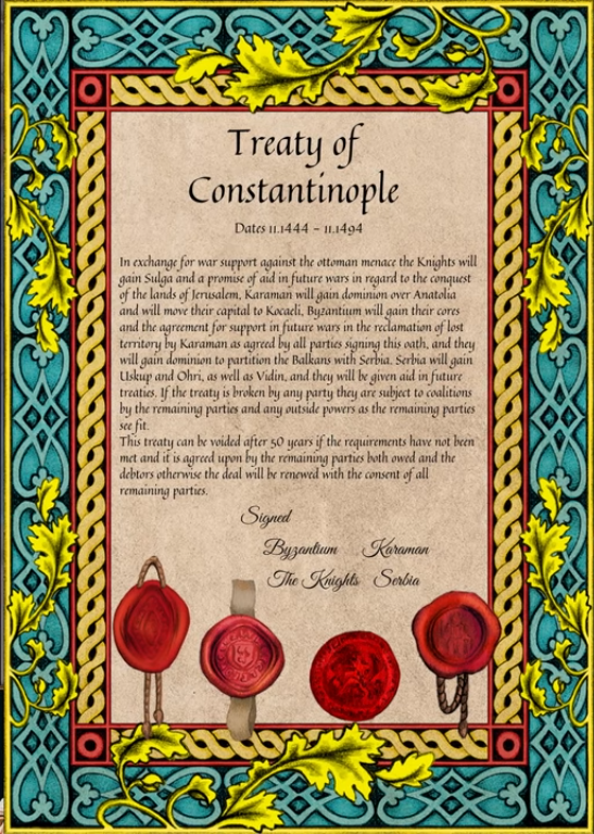 The video starts off with the hosts describing what the world looks like on the 11th November, 1444, the day after the Ottoman kicked the snot out of a Crusade led by Poland, out of fear of the Turks pushing into Europe. More on that in a bit. Everything looks exactly the same as it would at the start of a normal single player game, except for the fact that a number of players in eastern Europe and western Asia have have hatched a plan to slice up the Ottos in a multi-front war. Back to the Ottomans winning and failed Crusades, part of their rise came partly from the Fourth Crusade, where a series of events caused the Crusaders to attack Constantinople instead of Jerusalem, followed by the Byzantine Empire in the Balkans and Anatolia being sliced up by the Crusaders, similar to the lands the Ottomans held in 1444. Byzantium did manage to get a lot of that land back, but they were never again as strong as they once were, allowing the Ottomans to rise up in Anatolia, and eventually become the main power in the region. Anyway, that’s enough history, and feel free to tell me all the mistakes I made in the comments.